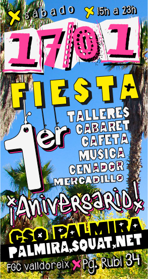 El 28 de diciembre 2015 se cumple el primer aniversario del CSO PALMIRA!!!